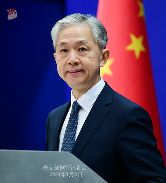 中新網(wǎng)北京1月3日電 (謝雁冰)中國(guó)外交部發(fā)言人汪文斌1月3日主持例行記者會(huì)。