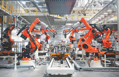 圖為在安徽合肥拍攝的大眾安徽模塊化電驅(qū)動(dòng)平臺(tái)工廠車(chē)身車(chē)間一角。