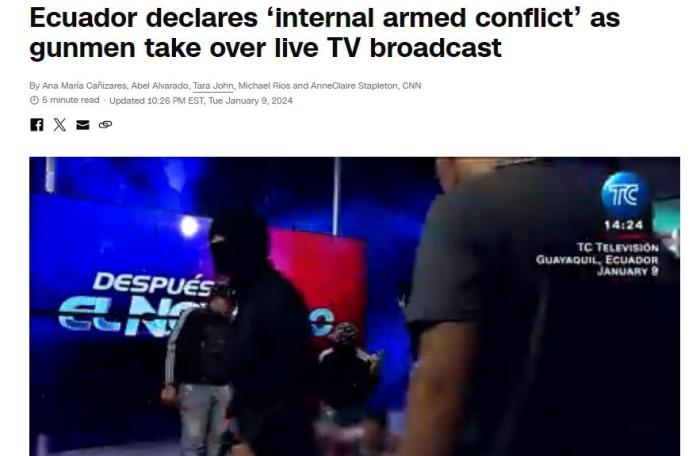 據(jù)美國(guó)有線電視新聞網(wǎng)(CNN)報(bào)道,該法令發(fā)布前不久,一伙武裝人員闖入厄瓜多爾西南部瓜亞基爾市一家電視臺(tái),并挾持電視臺(tái)工作人員。