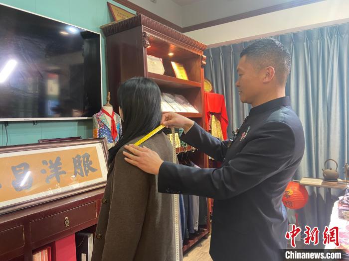 中新網(wǎng)寧波1月11日電(記者 林波)“特意打‘飛的’來(lái)浙江寧波找‘紅幫裁縫技藝’傳承人定做‘寶總’同款西裝?!苯?,來(lái)自山東青島的“西服愛(ài)好者”孫倪來(lái)到浙江省寧波市奉化區(qū)溪口鎮(zhèn)的王興昌洋服店,向該店“掌門(mén)人”王小方定做了一套西服。