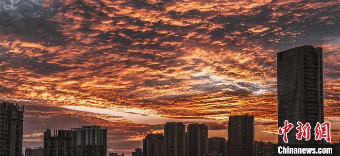 中新網(wǎng)昆明1月11日電 (黃興鴻)11日黃昏時(shí)分,云南昆明、德宏、臨滄等地的天空出現(xiàn)密集的“魚鱗云”。在夕陽(yáng)的映照下,似霞似錦,如夢(mèng)如幻。眾多網(wǎng)友在手機(jī)上的社交平臺(tái)上狂熱“曬”云,為彩云之南“上分”。
