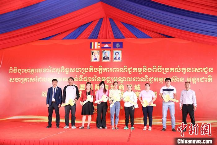 當(dāng)天,東盟國(guó)際物流商貿(mào)城舉行戰(zhàn)略合作伙伴簽約儀式,并向首批入駐商家交付店鋪鑰匙。柬埔寨商業(yè)部、金邊市政府、中國(guó)駐柬埔寨大使館等相關(guān)官員,柬埔寨僑社代表、商界領(lǐng)袖以及來(lái)自各國(guó)的商業(yè)合作伙伴共同出席前述活動(dòng)。