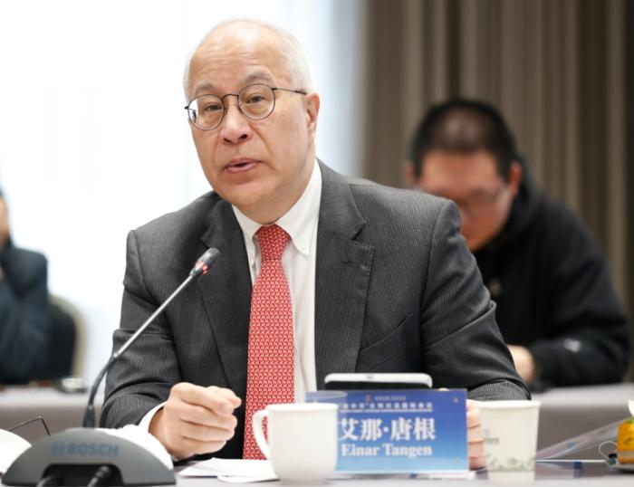 太和智庫(kù)高級(jí)研究員、美國(guó)時(shí)事評(píng)論員艾那·唐根教授在會(huì)上作交流(主辦方供圖)