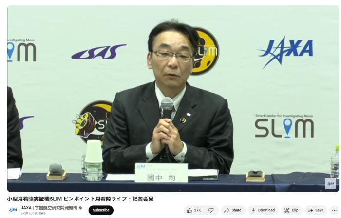 JAXA宇宙科學(xué)研究所所長(zhǎng)國(guó)中均在新聞發(fā)布會(huì)上講話。圖片來(lái)源:日本宇宙航空研究開(kāi)發(fā)機(jī)構(gòu)(JAXA)直播截圖