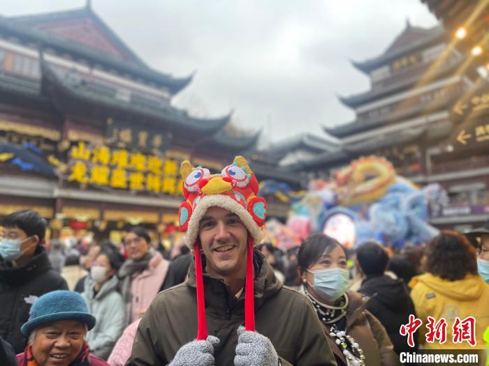 1月21日,2024豫園燈會(huì)正式亮燈,一名西班牙小伙兒在現(xiàn)場(chǎng)觀燈。中新網(wǎng)記者 鄭瑩瑩 攝