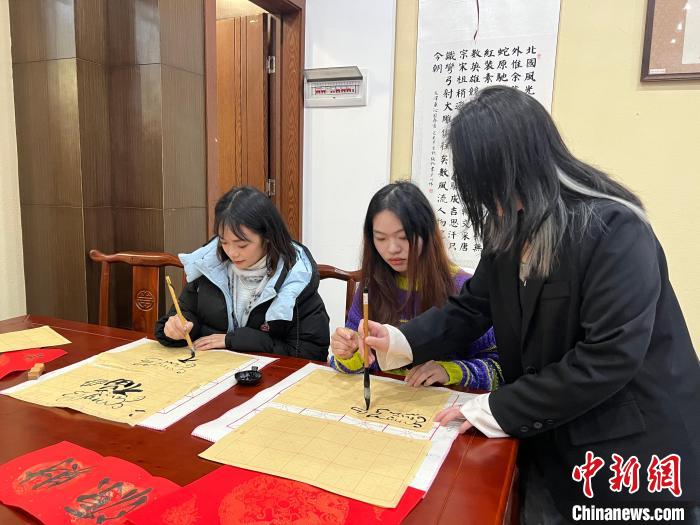 圖為臺(tái)青體驗(yàn)書法。中新網(wǎng)記者周毅攝