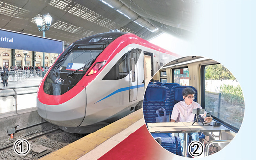 圖①:中企研制的電力內(nèi)燃雙動力動車組列車??吭谥抢サ貋喐缰醒胲囌?。