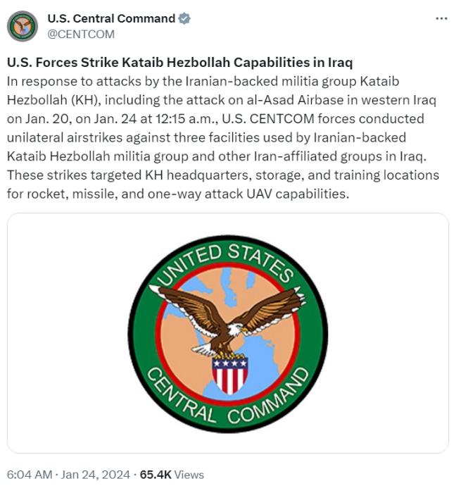 據(jù)報(bào)道,奧斯汀在聲明中表示,此次襲擊“是對(duì)伊朗支持的民兵武裝在伊拉克和敘利亞針對(duì)美國(guó)和聯(lián)軍人員的一系列襲擊的直接回應(yīng)”。他表示,襲擊目標(biāo)是民兵武裝“真主黨旅”和其他武裝組織在伊拉克使用的3處設(shè)施。