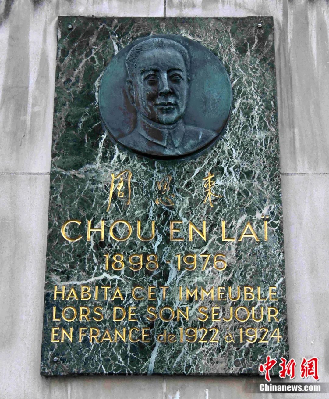 在巴黎設(shè)立的周恩來總理紀念牌。李洋 攝