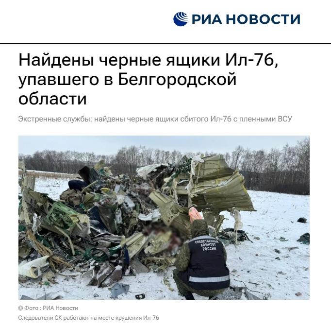 中新網(wǎng)1月25日電 據(jù)俄新社當(dāng)?shù)貢r(shí)間25日?qǐng)?bào)道,在俄羅斯別爾哥羅德州墜毀的伊爾-76運(yùn)輸機(jī)的兩個(gè)黑匣子目前均已找到,已移交給調(diào)查人員。