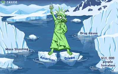 種種社會問題加劇社會悲觀情緒蔓延,社會治理失調凸顯“美國夢”行不再光鮮的事實。據(jù)美國廣播公司(ABC News)本月中旬報道,該公司聯(lián)合益普索開展了一項關于“美國夢”的民調。與2010年首次開展此項民調時,50%的受訪民眾相信“美國夢”存在的事實相比,最新民調中,僅有27%的人認為“美國夢”依然存在?!柏瑝簟边€是“幻夢”?以激勵個人獲得成功的“美國夢”恐將為社會困局的毒藤所纏繞,“自由女神火炬”指引下的美國夢成為一個個“美國噩夢”。(彭大偉 孟湘君 谷麗萍 陳善坤 薛凌橋)