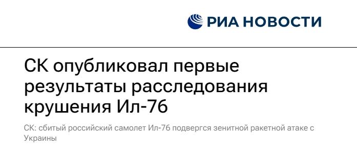 俄偵查委員會:初步調(diào)查顯示伊爾-76運(yùn)輸機(jī)遭烏導(dǎo)彈襲擊