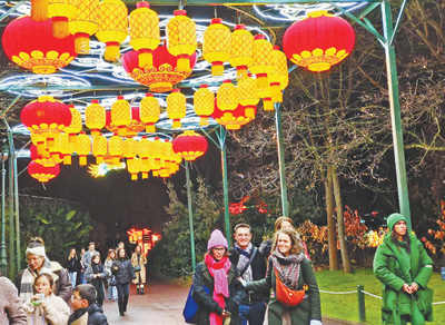 法國民眾在巴黎舉行的豫園燈會上游覽。