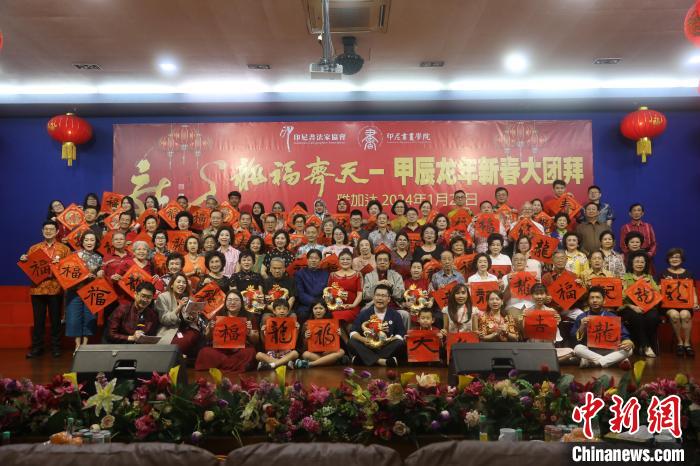當?shù)貢r間28日上午,這些書法愛好者齊聚印尼書畫學(xué)院,參加“‘龍’福齊天——甲辰龍年新春大團拜”活動?;顒佑捎∧釙覅f(xié)會和印尼書畫學(xué)院聯(lián)合舉辦。