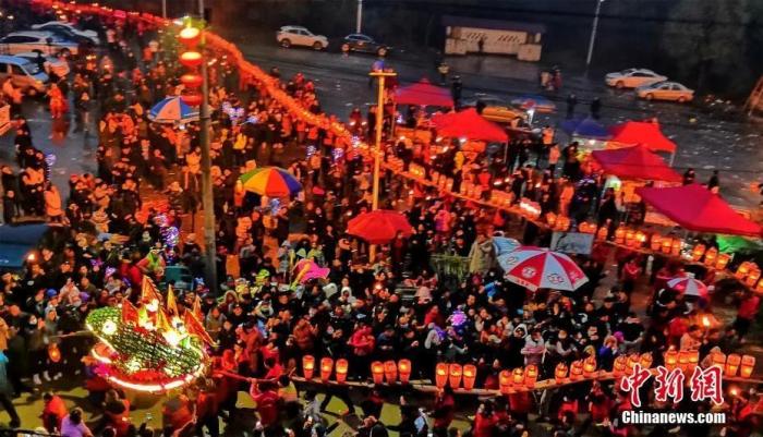 南昌“板凳龍”游街綿延千米 人山人海場(chǎng)面壯觀(guān)。劉占昆 攝