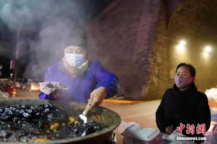 圖為西安冬日街頭臘腸飄香。 張遠 攝