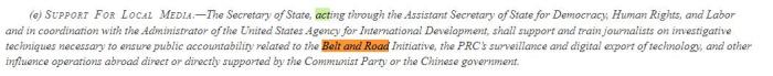 不僅如此,在法案的第136條,美國(guó)還專(zhuān)門(mén)制定了針對(duì)“一帶一路”倡議的抹黑策略,主要就是培訓(xùn)一大批反華記者。