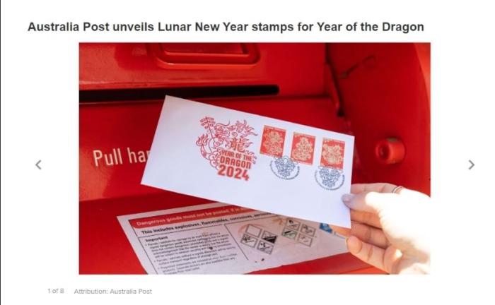 澳大利亞郵政近日推出了龍年特別版中國春節(jié)郵票。圖片澳大利亞第九新聞網(wǎng)站截圖。