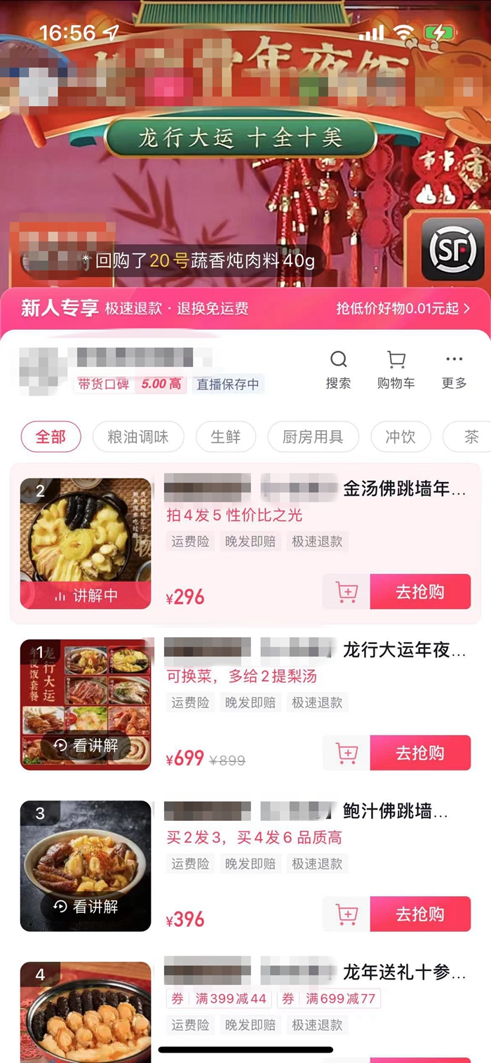 預(yù)制菜年夜飯在網(wǎng)上熱銷。截圖