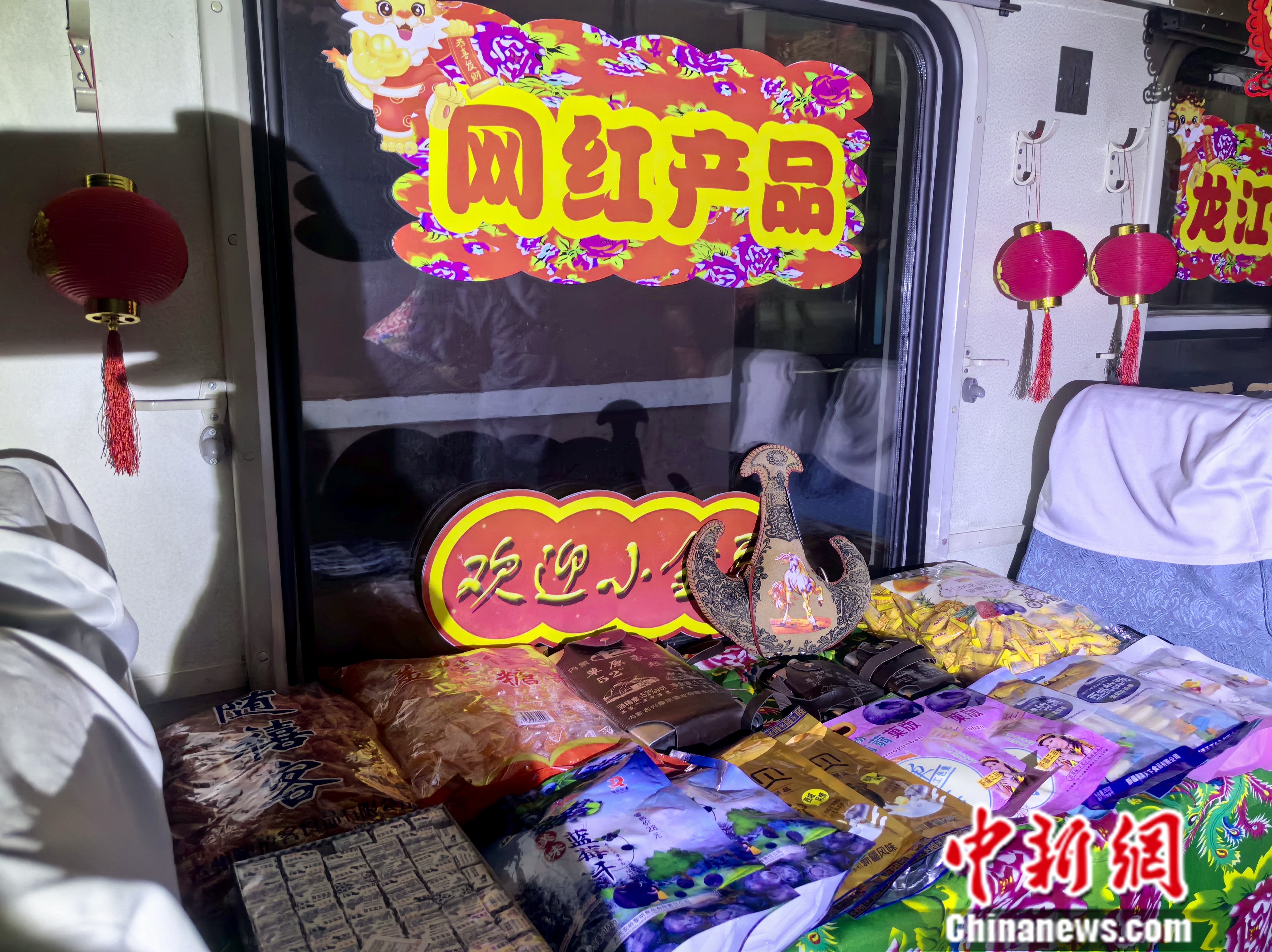 春節(jié)前,走進(jìn)4045次列車車廂,映入眼簾的是火紅的燈籠、拉花,龍年春節(jié)氛圍一下被拉滿,行走的“列車大集”上更是擺滿了地道的東北年貨,讓人不禁感嘆:春運(yùn)路上也可以買特色年貨了!