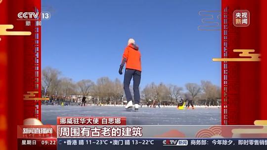 挪威駐華大使 白思娜:挪威人我們特別喜歡冬天,去爬山、滑冰、滑雪。我也很喜歡在這滑冰,因為這里是城市的中心,周圍有古老的建筑,很多人在一起滑冰。