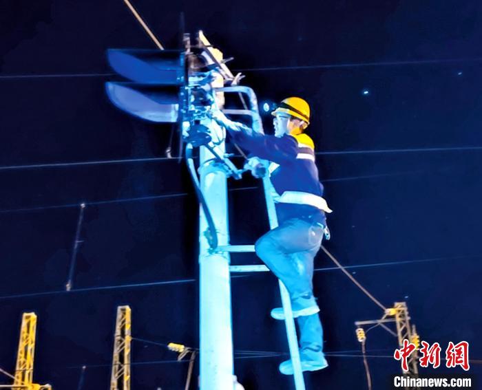 圖為安康東電務(wù)車間職工正在進(jìn)行高柱信號(hào)機(jī)檢修。王建滆攝