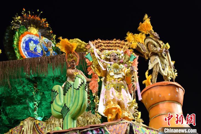 巴西圣保羅狂歡節(jié)的花車裝飾和演員服飾往往華麗無比,為觀眾奉上視覺盛宴。記者林春茵攝
