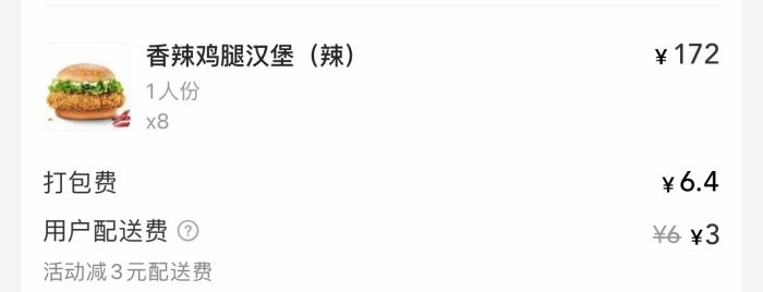 不過,記者20日查詢多個外賣平臺,發(fā)現在這些平臺上點肯德基外賣,和在肯德基APP上相比,打包費并不完全一致。例如,記者在某外賣平臺上點了八個香辣雞腿漢堡,食物價格不到200元,而打包費已經達到6.4元。
