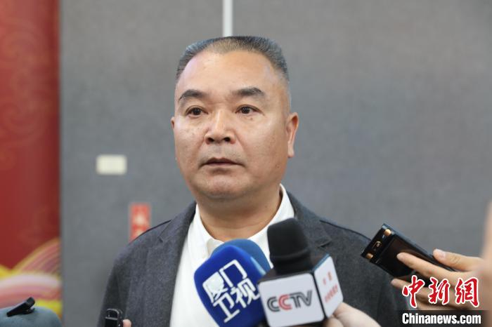 泉州晉江紅十字會(huì)高級(jí)顧問(wèn)李朝暉在金門水頭碼頭接受中新社等媒體采訪。中新社記者 楊程晨 攝