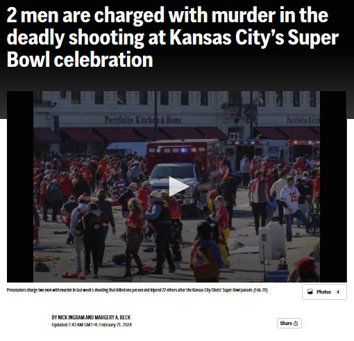 中新網(wǎng)2月21日電 據(jù)美聯(lián)社報(bào)道,當(dāng)?shù)貢r(shí)間20日,一份公開的法庭文件顯示,美國(guó)堪薩斯城“超級(jí)碗”游行發(fā)生的槍擊事件中,兩名男子被控謀殺,報(bào)道稱“兩人在爭(zhēng)吵后不久掏出了槍并開槍射擊”。