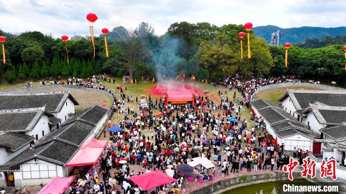 中新網(wǎng)福建永定2月20日電 (黃秋萍 盧燁)新春佳節(jié)里,福建省龍巖市永定區(qū)各地一大波民俗活動紛紛登場,當(dāng)?shù)孛癖娫诙嘧硕嗖实拿袼谆顒又懈惺苤鴤鹘y(tǒng)的濃濃年味兒。