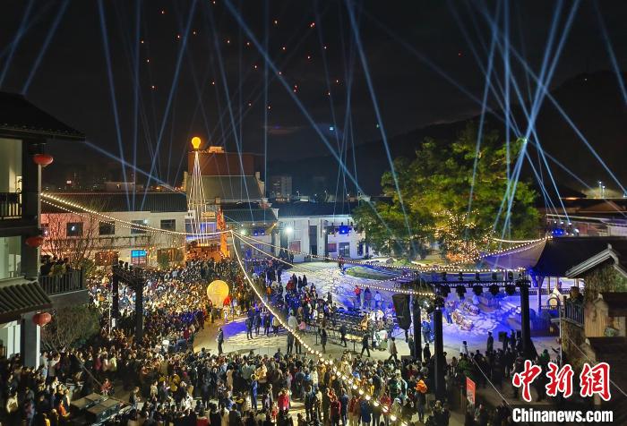 賴聲川歷時(shí)多年在家鄉(xiāng)江西會(huì)昌打造的會(huì)昌戲劇小鎮(zhèn)開幕,燈光秀現(xiàn)場人氣爆棚。(受訪者供圖)