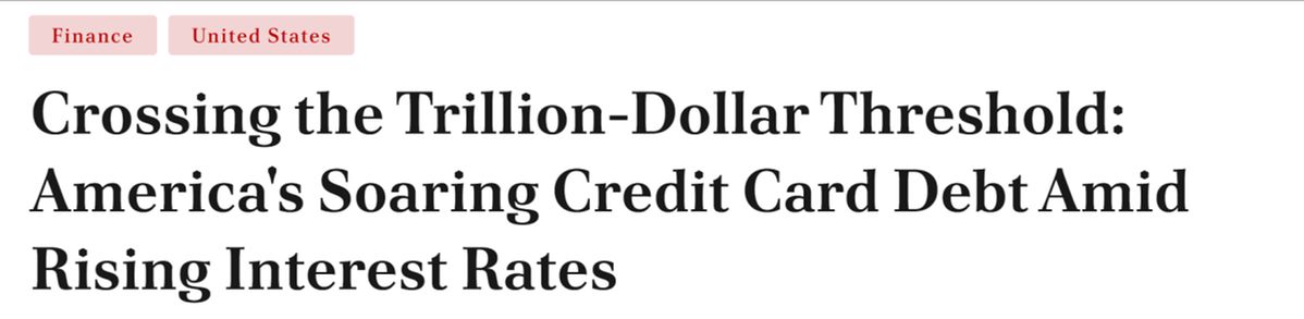 另據(jù)美國媒體BNN Breaking網(wǎng)站報道,美國人的信用卡債務(wù)總額累計超過了1萬億美元,創(chuàng)歷史新高。美聯(lián)儲激進(jìn)的加息措施推動信用卡平均利率大幅增加至22%以上,零售信用卡利息率更是接近驚人的29%。