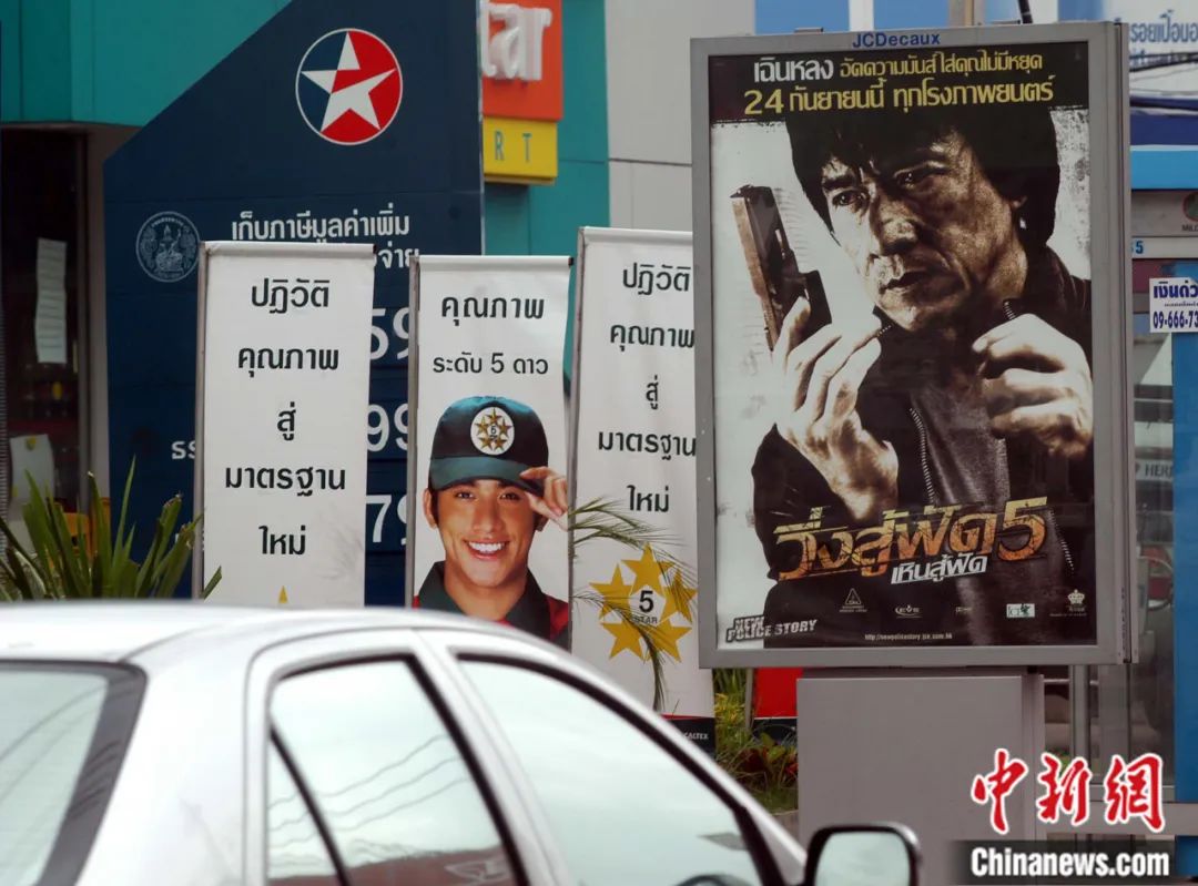 2004年,泰國曼谷主要街道上張貼的成龍主演電影《新警察故事》宣傳海報(bào)。張宇 攝