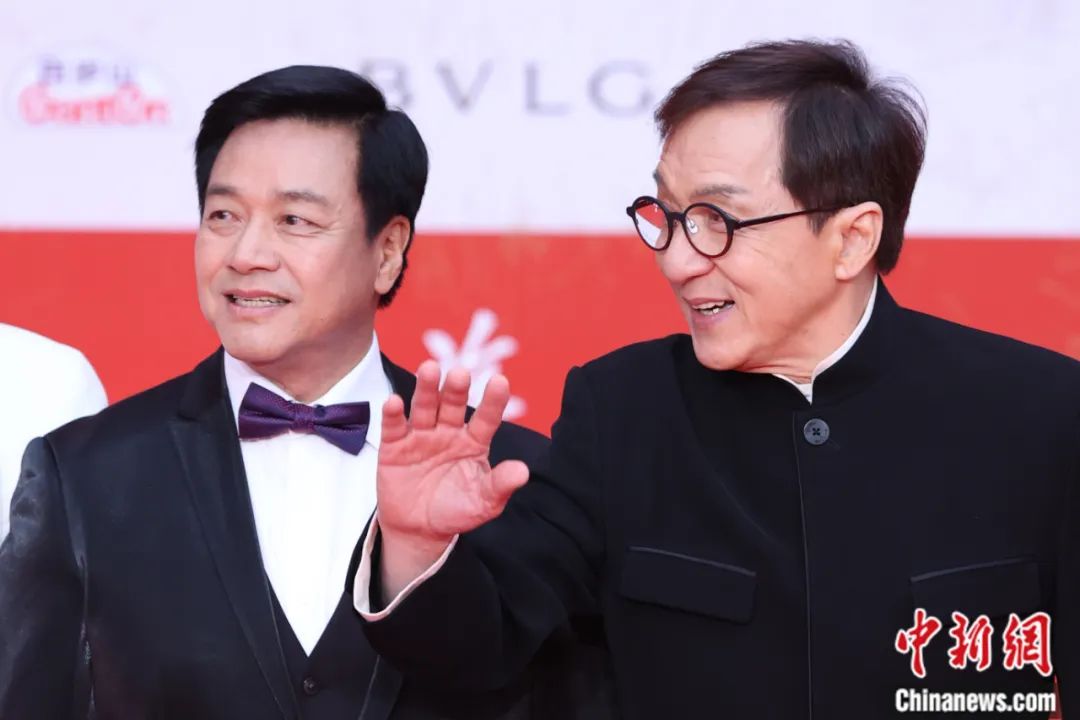 2023年4月,成龍(右)、唐季禮亮相第十三屆北京國際電影節(jié)開幕紅毯。蔣啟明 攝