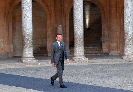 2023年10月5日,在西班牙格拉納達(dá),前來參加第三屆歐洲政治共同體領(lǐng)導(dǎo)人會(huì)議的法國總統(tǒng)馬克龍抵達(dá)阿爾罕布拉宮。新華社記者連漪攝