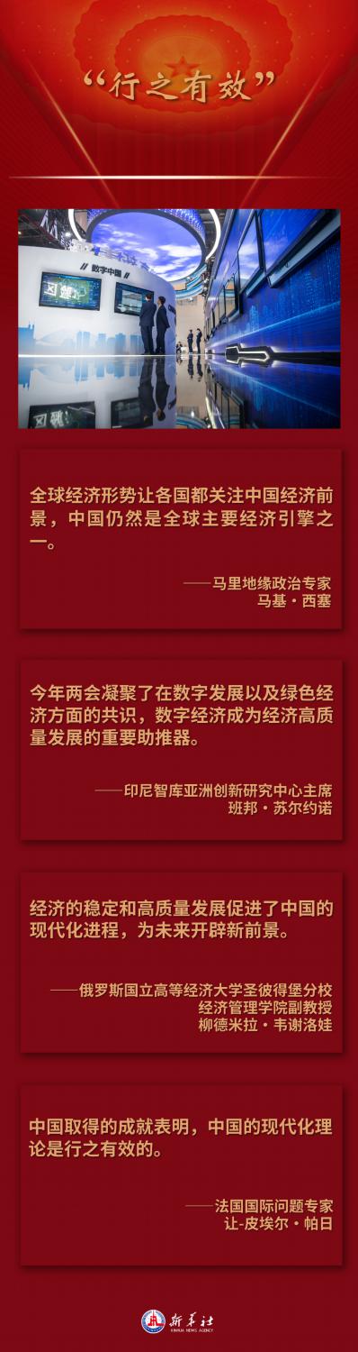 如何推動中國式現(xiàn)代化建設(shè),是國際社會長期關(guān)注中國的一大焦點(diǎn)。透過中國全國兩會窗口,國際輿論和海外人士看到,在中國式現(xiàn)代化的道路指引下,中國經(jīng)濟(jì)社會發(fā)展取得令人矚目的成績,給世界各國帶來合作共贏的新機(jī)遇,中國式現(xiàn)代化為人類實(shí)現(xiàn)現(xiàn)代化提供了新選擇,為發(fā)展中國家拓展現(xiàn)代化路徑提供了有益啟示。
