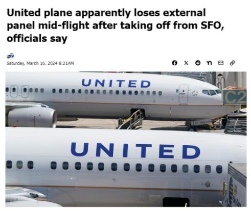 3月,美聯(lián)航波音客機又出現(xiàn)了包括引擎起火、輪胎脫落、滑出跑道在內的多起事故。