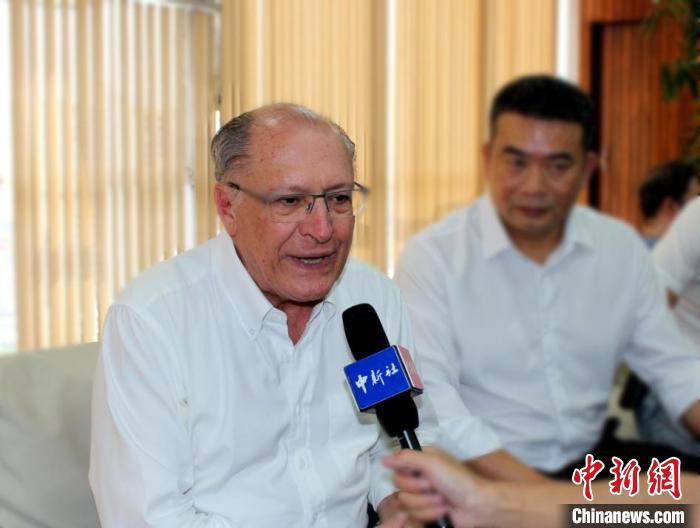 當?shù)貢r間3月16日,巴西圣保羅,巴西副總統(tǒng)兼發(fā)展、工業(yè)與貿(mào)易部長阿爾克明接受中新社記者專訪?!×趾?攝