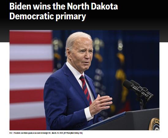 中新網(wǎng)3月31日電 據(jù)美聯(lián)社報(bào)道,當(dāng)?shù)貢r(shí)間30日,根據(jù)計(jì)票結(jié)果顯示,美國現(xiàn)總統(tǒng)拜登贏得2024年美國總統(tǒng)選舉北達(dá)科他州民主黨初選。