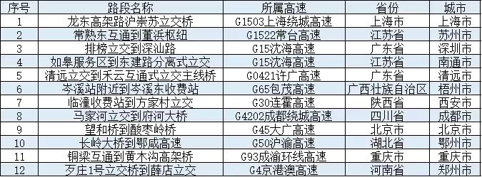 清明節(jié)期間,全國(guó)高速公路預(yù)計(jì)易發(fā)生擁堵緩行的路段,如表1所示。
