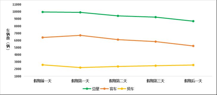 預(yù)計(jì)清明假期,普通公路日均斷面交通量約9550輛,假期前一天與第一天交通量相對(duì)較高,隨后有所下降。