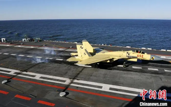 2012年11月23日,殲-15艦載戰(zhàn)斗機(jī)首次在遼寧艦上成功著艦。胡鍇冰 攝