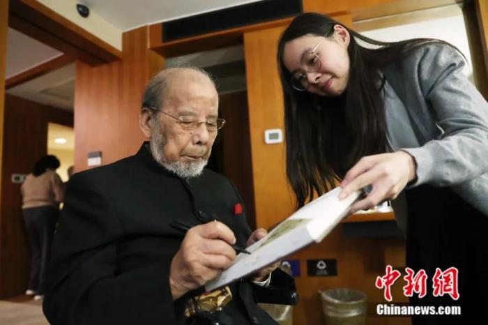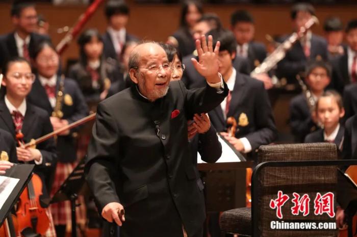 音樂會的尾聲,99歲高齡的中國著名指揮家曹鵬在長達一分半的掌聲中登上指揮臺。
