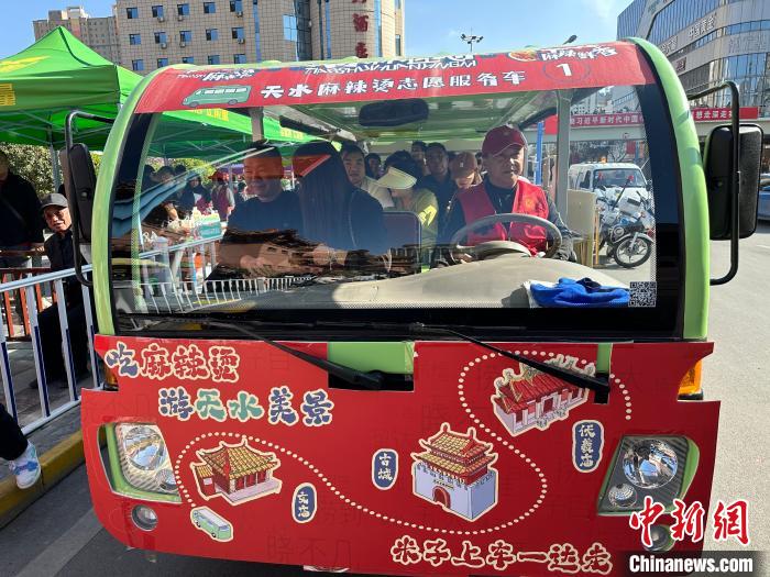 3月25日,游客乘坐的天水麻辣燙志愿服務(wù)車?!〈魑牟?攝