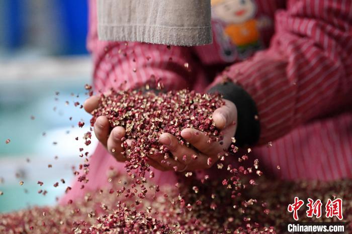 圖為工作人員檢查初篩的花椒。(資料圖) 九美旦增 攝