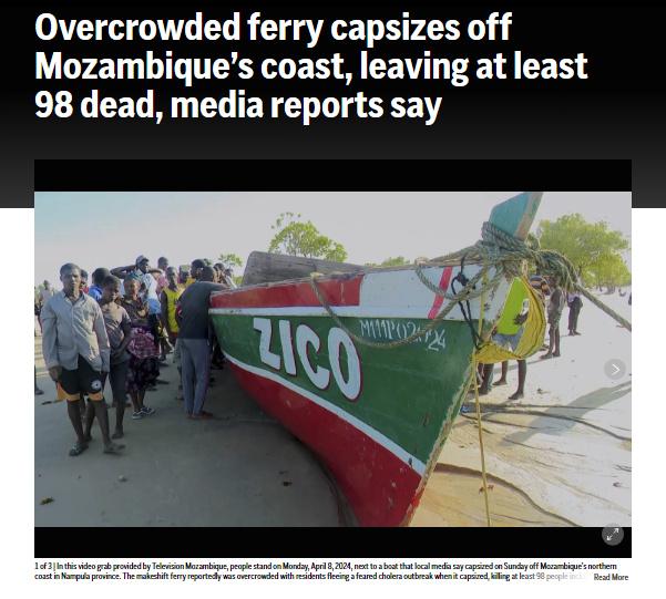 中新網(wǎng)4月9日電 據(jù)美聯(lián)社當(dāng)?shù)貢r(shí)間4月8日?qǐng)?bào)道,一艘臨時(shí)渡輪在莫桑比克北部海岸傾覆,已造成至少98人死亡,其中包括多名兒童。