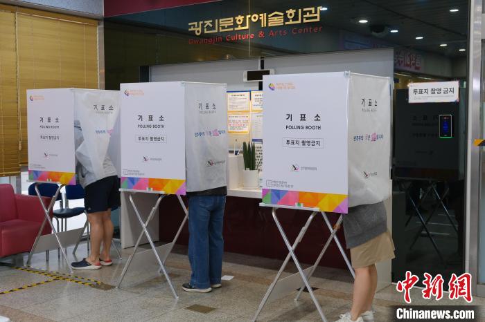 中新社記者當天上午在首爾市廣津區(qū)一處投票站看到,選民陸續(xù)來到投票站,在完成現(xiàn)場登記并領(lǐng)取選票后,有序進入寫票所內(nèi)投票。