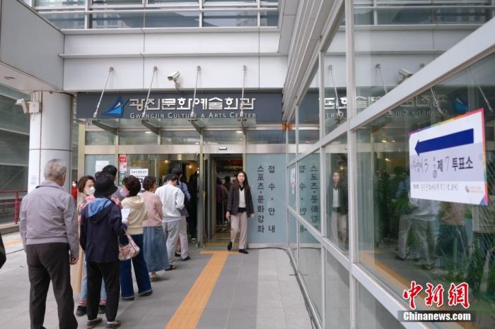 當?shù)貢r間4月10日,韓國第22屆國會議員選舉啟動正式投票,各政黨候選人將角逐國會300個議席。圖為選民排隊進入首爾市廣津區(qū)一處投票站。