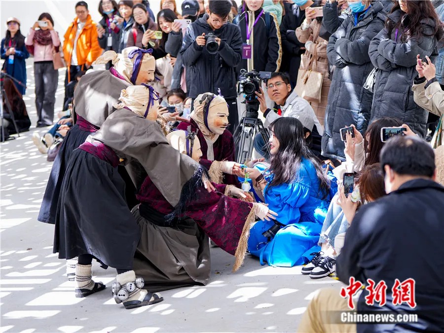 2024年3月28日,2024年世界戲劇日慶典活動(dòng)中,參加戲劇工坊演出的智利劇團(tuán)演員與觀眾互動(dòng)。活動(dòng)主辦方供圖